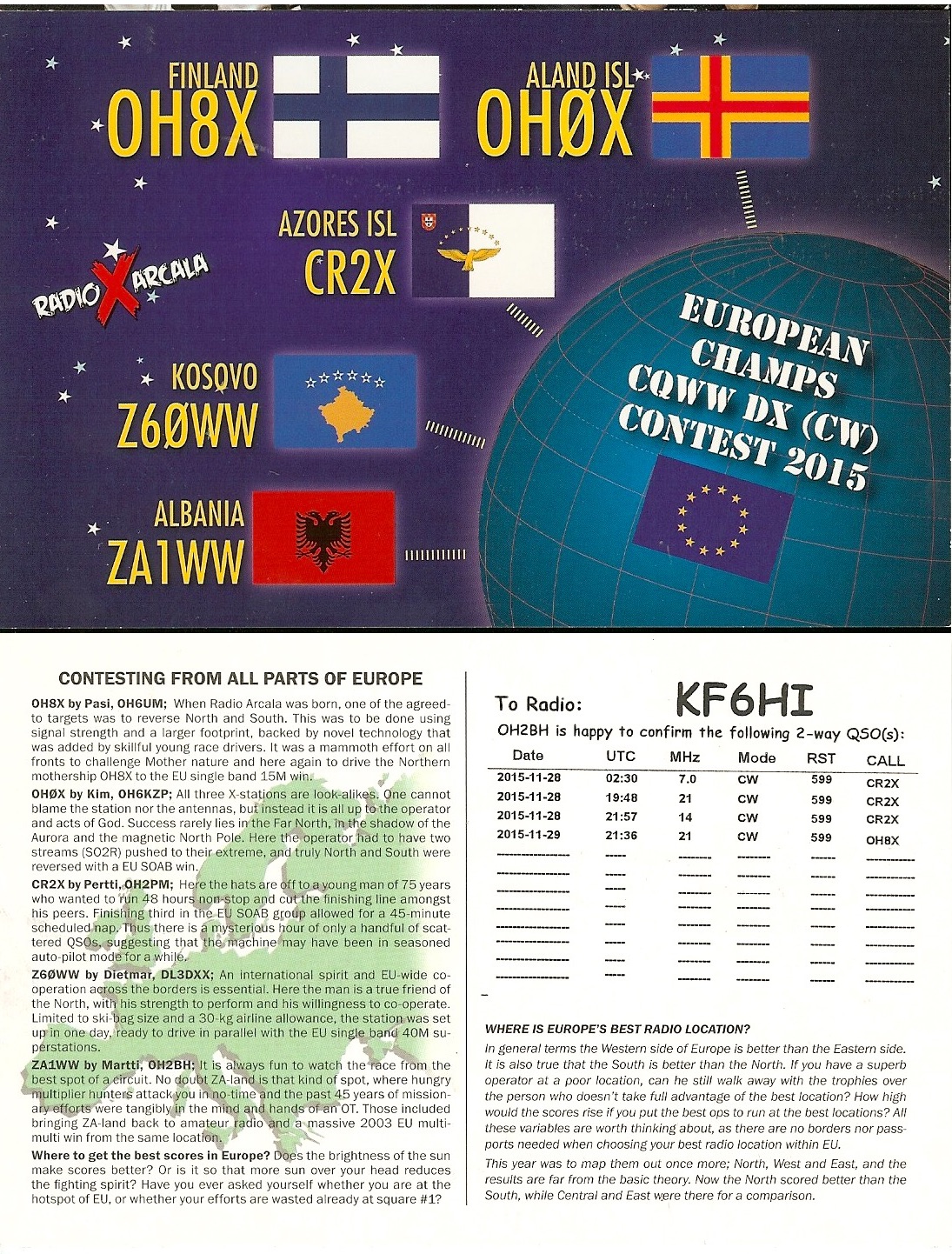 KF6HI QSO with OH8X (click for QRZ info), information for above highlighted contact: