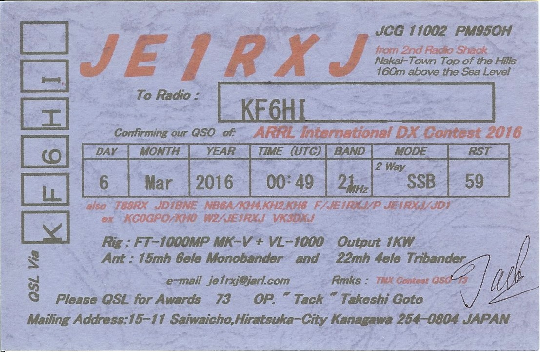 KF6HI QSO with JE1RXJ (click for QRZ info), information for above highlighted contact: