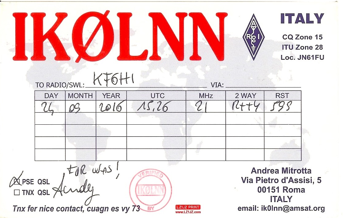 KF6HI QSO with IK0LNN (click for QRZ info), information for above highlighted contact: