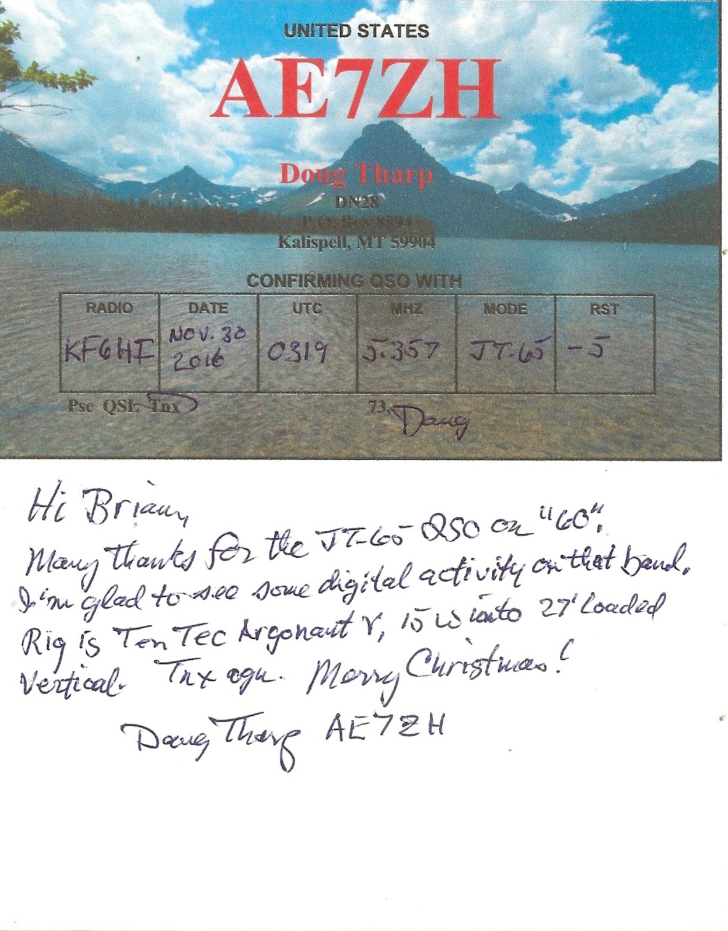 AE7ZH | 2016-11-30 | 03:19 | JT65 | Y | Y | N | N |