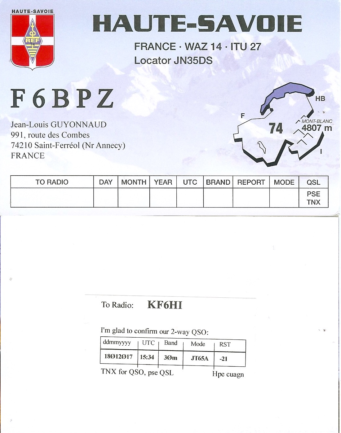 KF6HI QSO with F6BPZ (click for QRZ info), information for above highlighted contact: