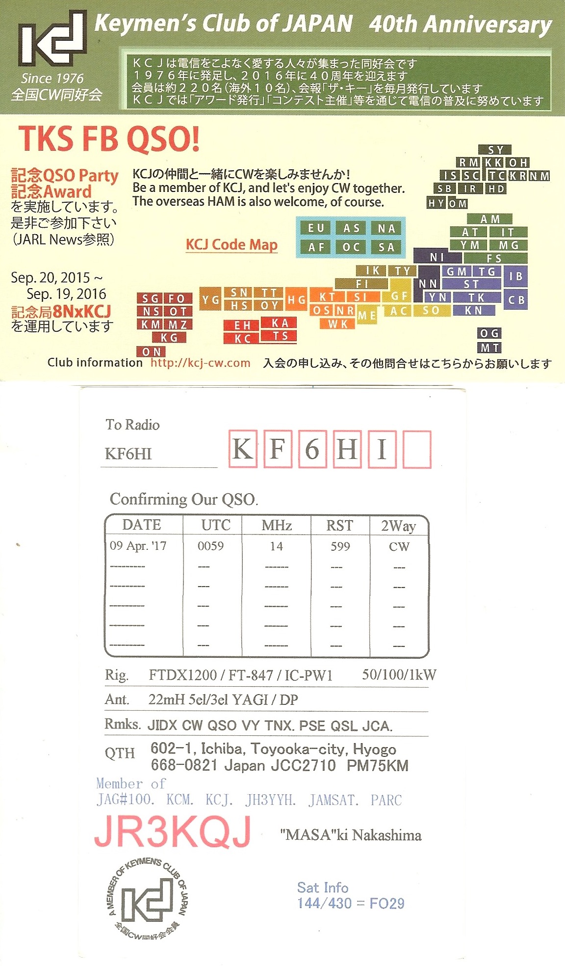 KF6HI QSO with JR3KQJ (click for QRZ info), information for above highlighted contact: