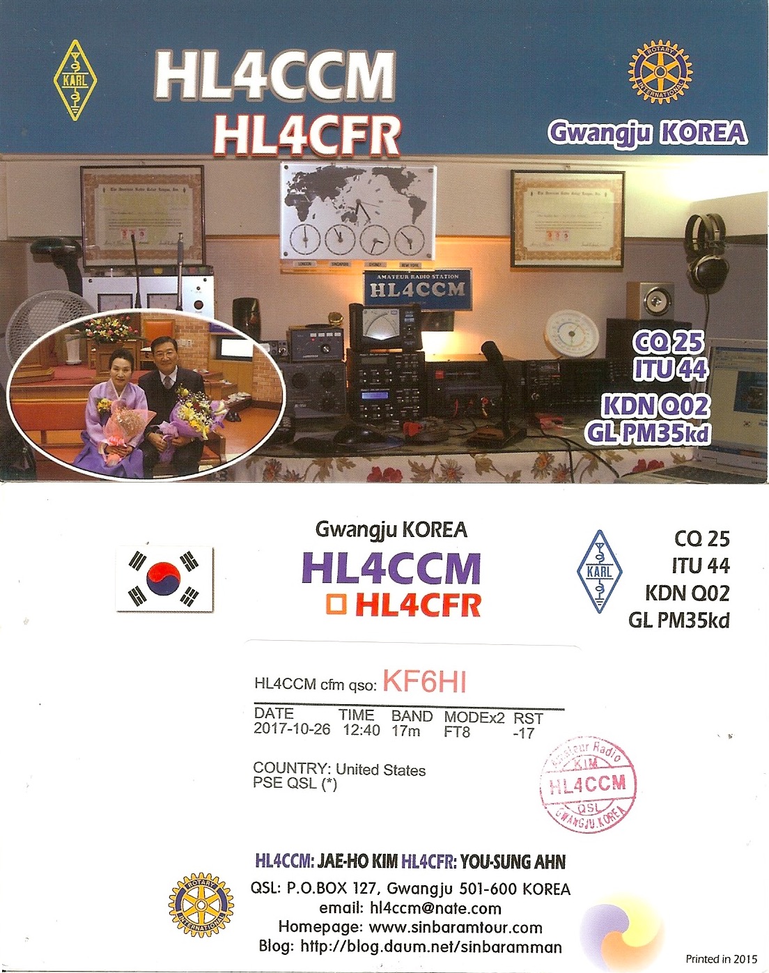 KF6HI QSO with HL4CCM (click for QRZ info), information for above highlighted contact: