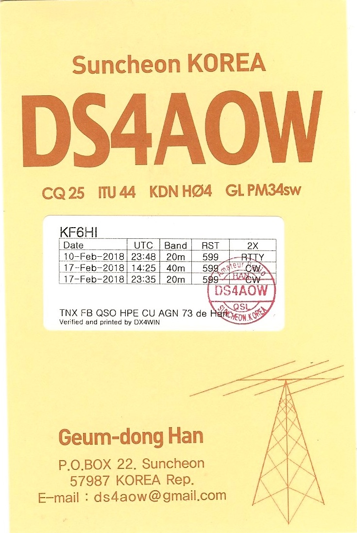 DS4AOW | 2018-02-10 | 23:49 | RTTY | N | Y | Y | N |