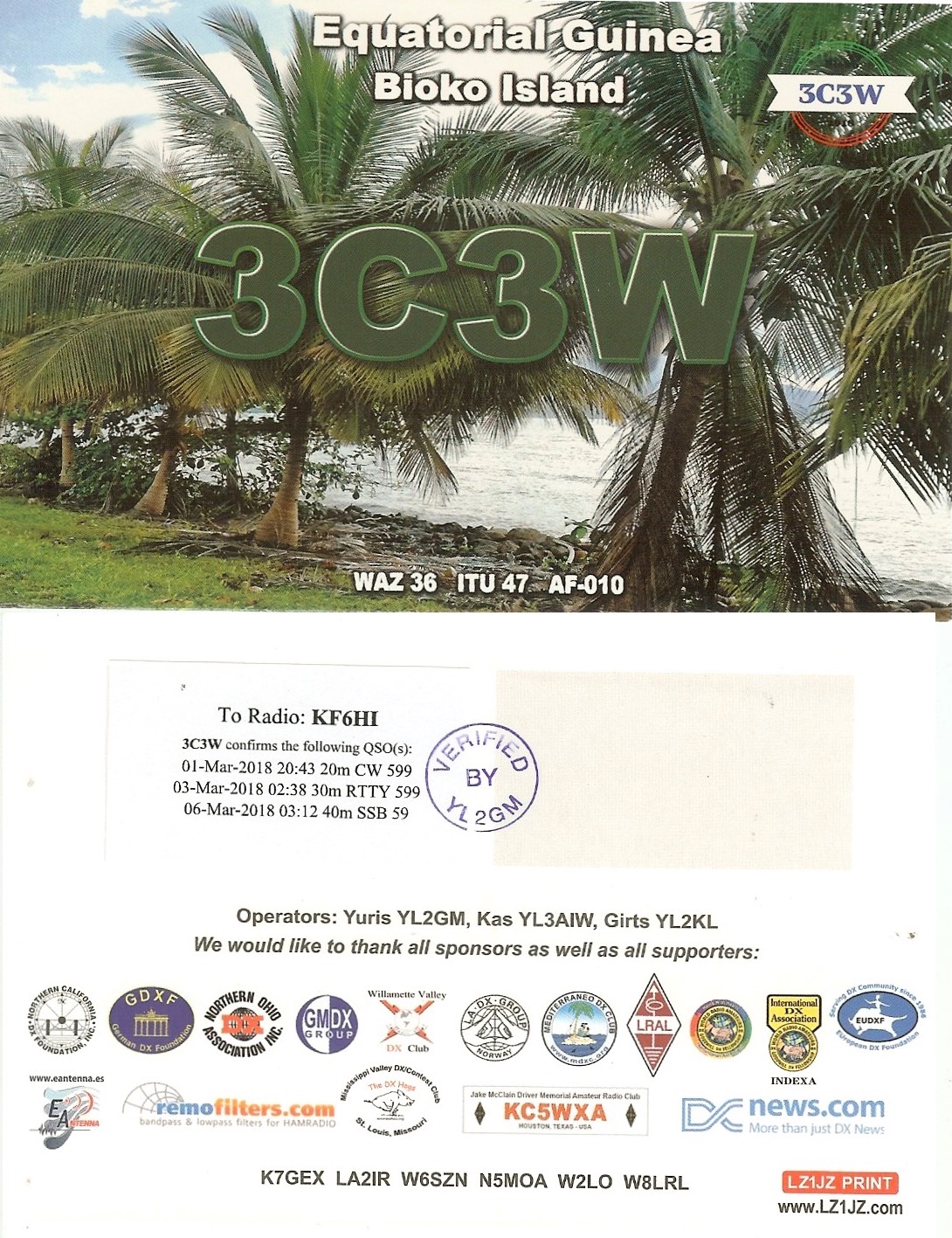 Number of QSOs found on 14 MHz with Equatorial Guinea : 3 | |||||||||||||||||||||||||||||||||
