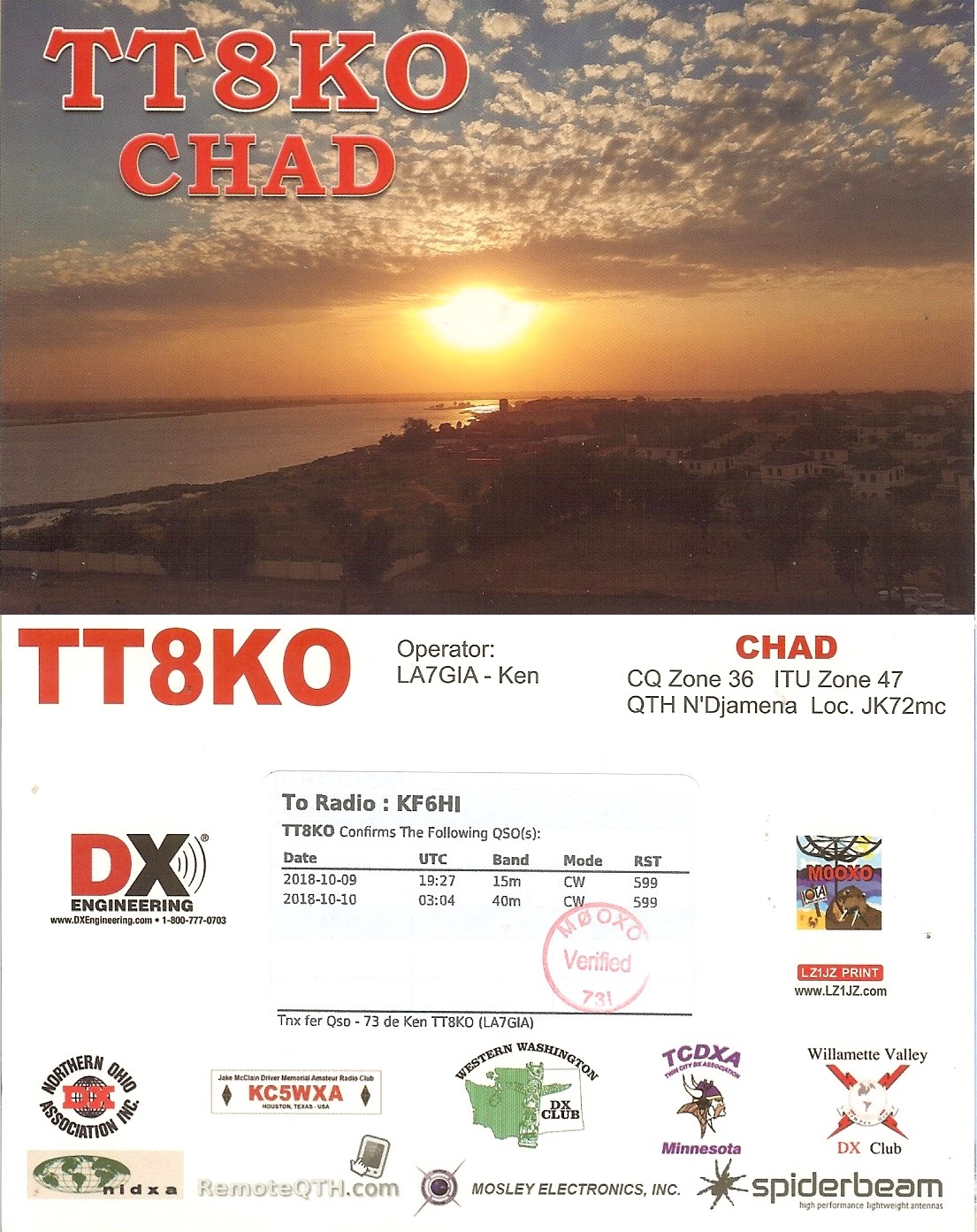 Number of QSOs found on 21 MHz with Chad : 2 | |||||||||||||||||||||||||