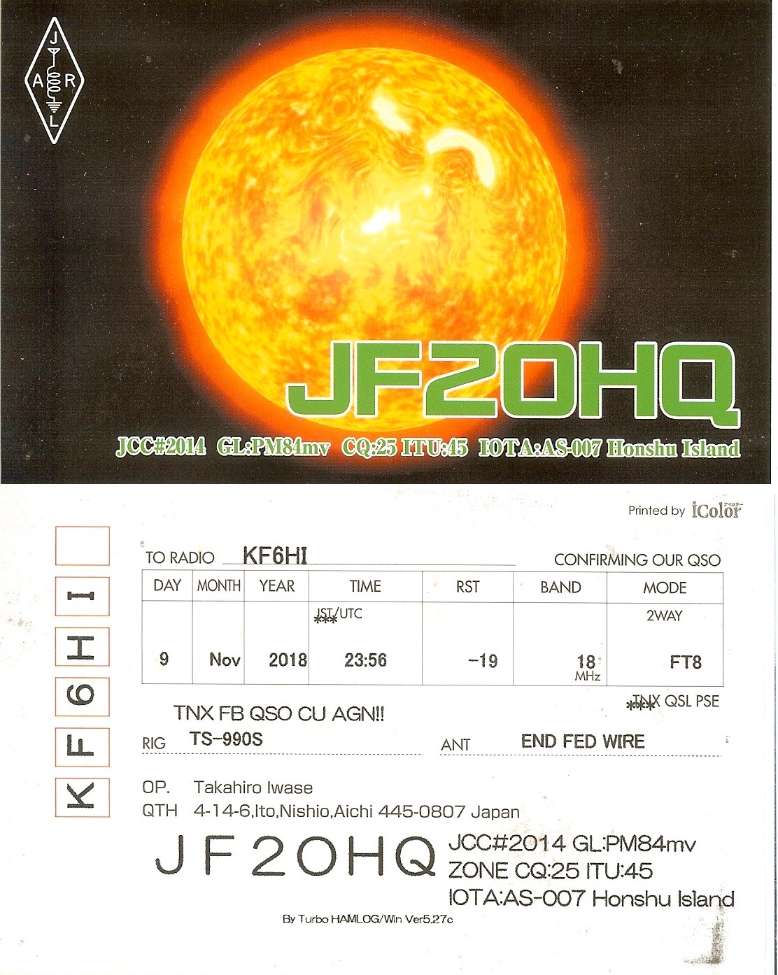 KF6HI QSO with JF2OHQ (click for QRZ info), information for above highlighted contact: