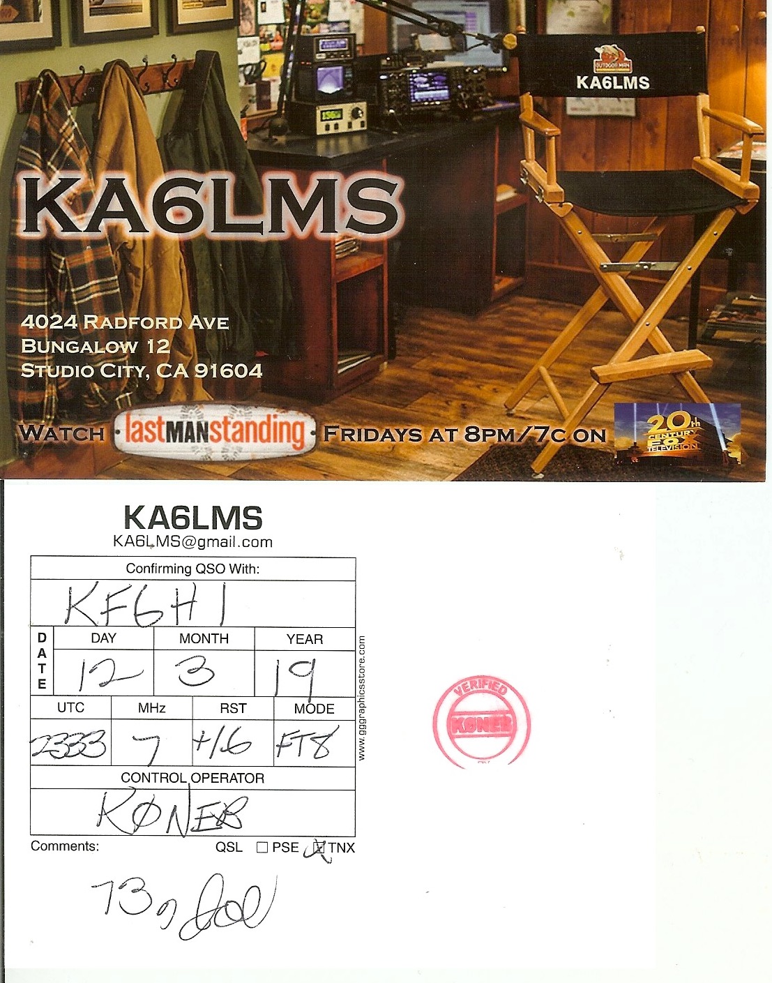KF6HI QSO with KA6LMS (click for QRZ info), information for above highlighted contact: Station Link: Last Man Standing