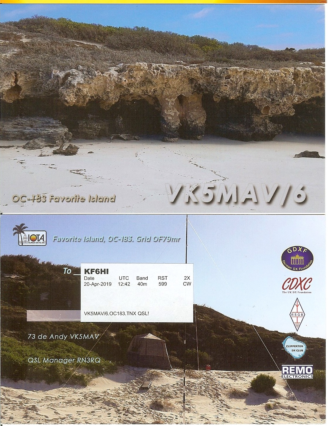 | VK5MAV/6 | 2019-04-20 | 12:41 | CW | Y | Y | N | N |