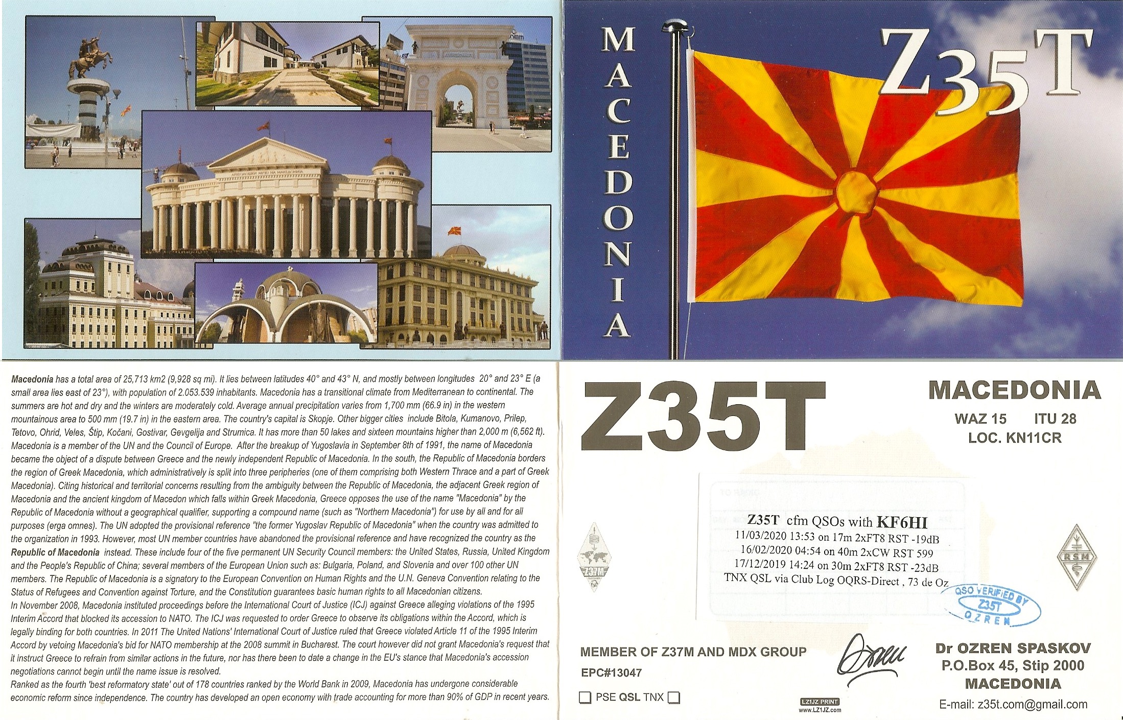 | Number of QSOs found on 10 MHz with Macedonia : 1 | |||||||||||||||||