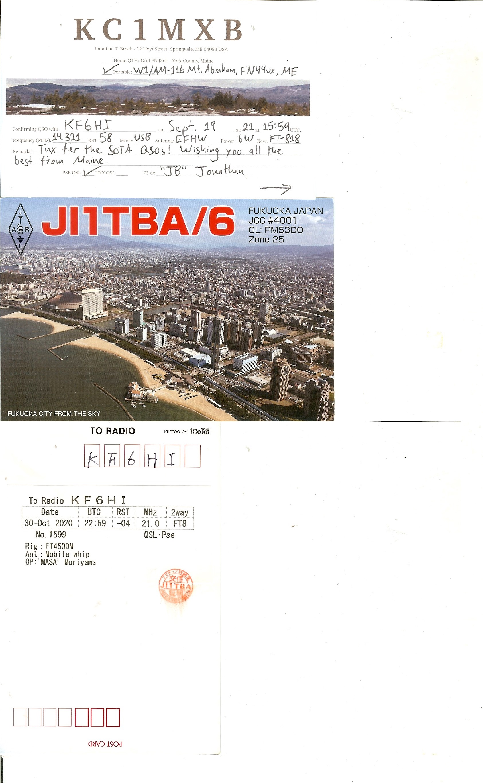 KF6HI QSO with JI1TBA/6 (click for QRZ info), information for above highlighted contact: