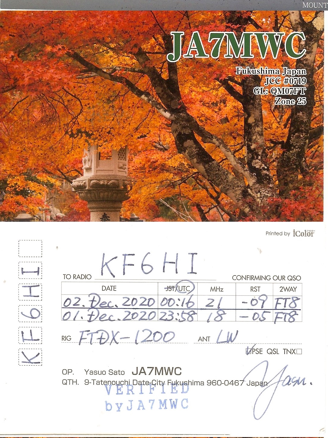 KF6HI QSO with JA7MWC (click for QRZ info), information for above highlighted contact: