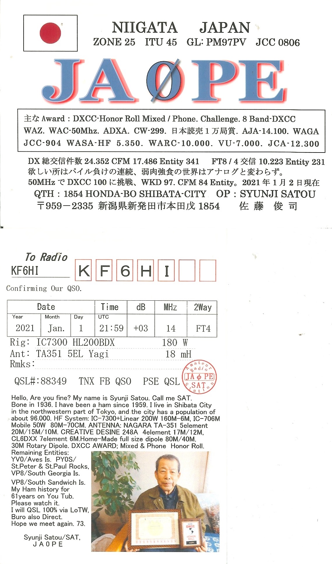KF6HI QSO with JA0PE (click for QRZ info), information for above highlighted contact: