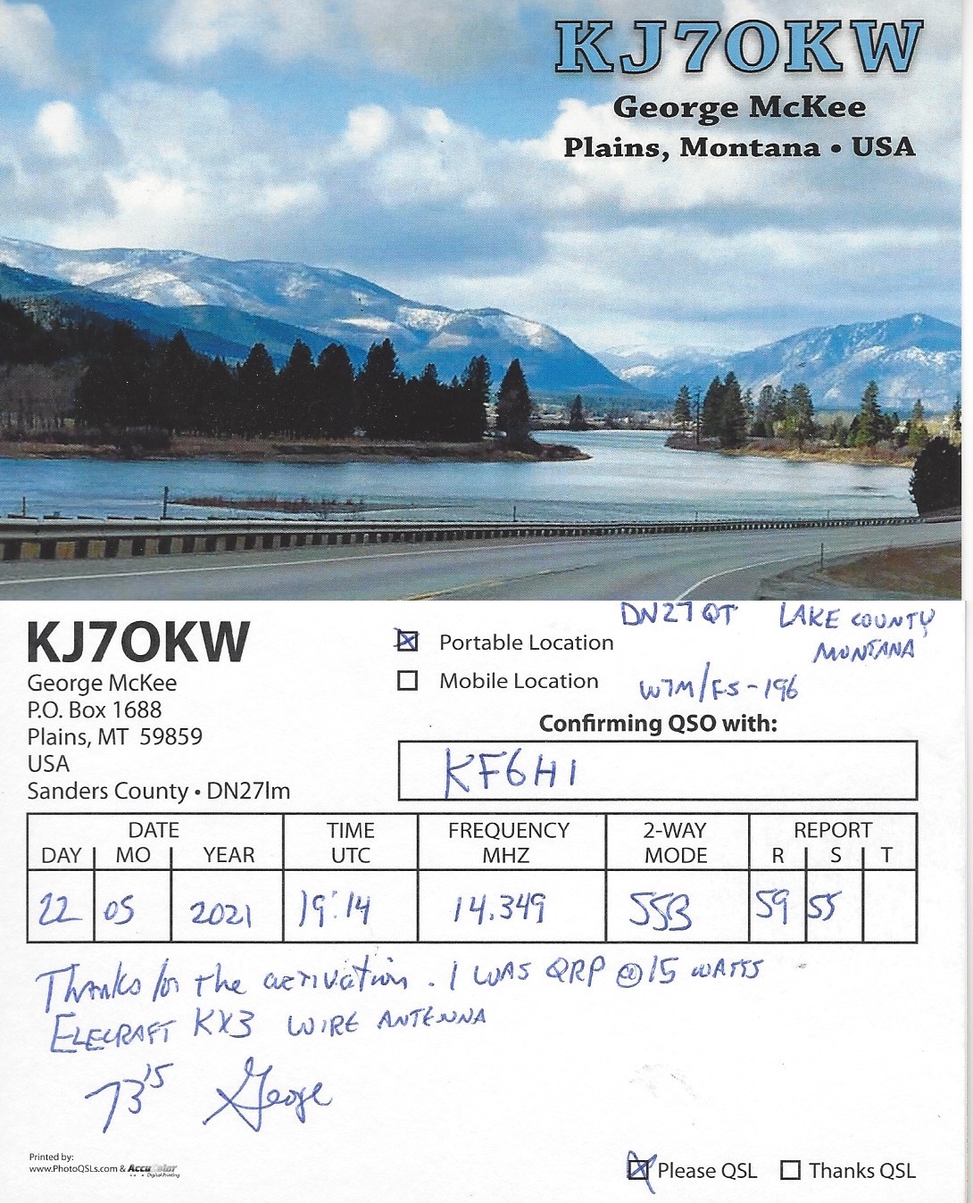 KJ7OKW | 2021-05-22 | 19:14 | SSB | Y | Y | Y | Y |