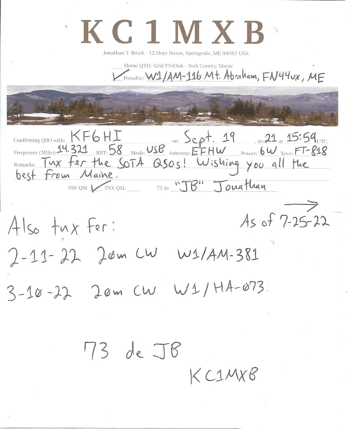 KF6HI QSO with KC1MXB (click for QRZ info), information for above highlighted contact: