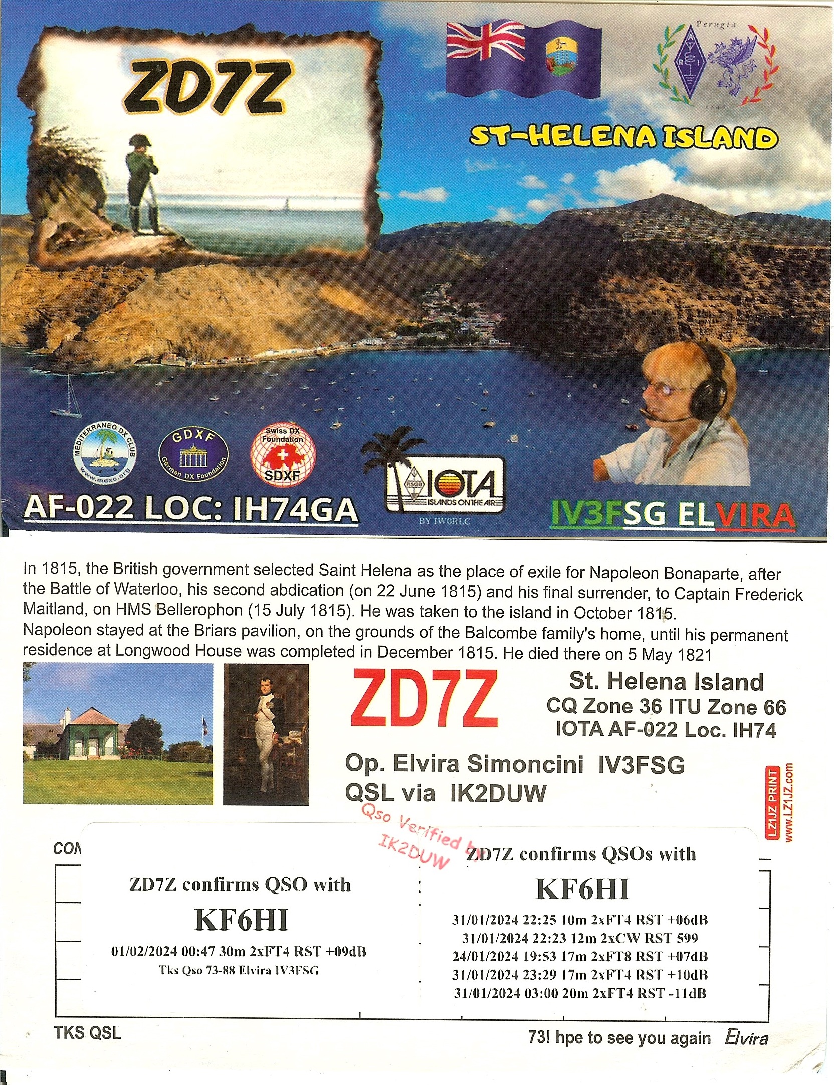 Number of QSOs found on 10 MHz with St. Helena : 1 | |||||||||||||||||
