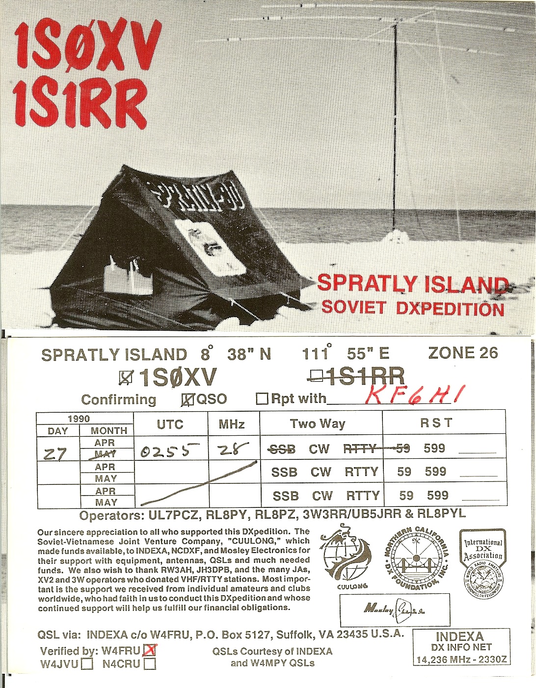 KF6HI QSO with 1S0XV (click for QRZ info), information for above highlighted contact: