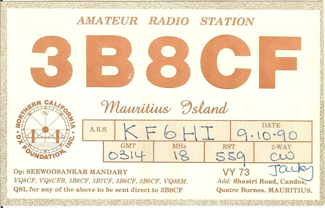 Number of QSOs found on 18 MHz with Mauritius : 3 | |||||||||||||||||||||||||||||||||