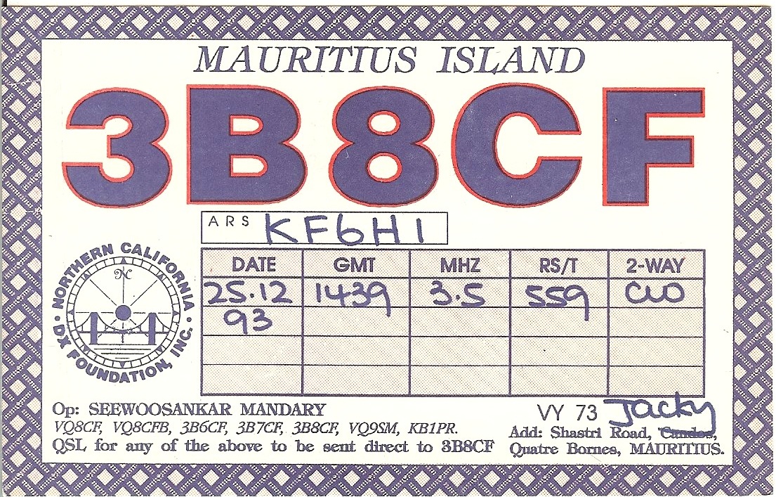 Number of QSOs found on 3.5 MHz with Mauritius : 1 | |||||||||||||||||