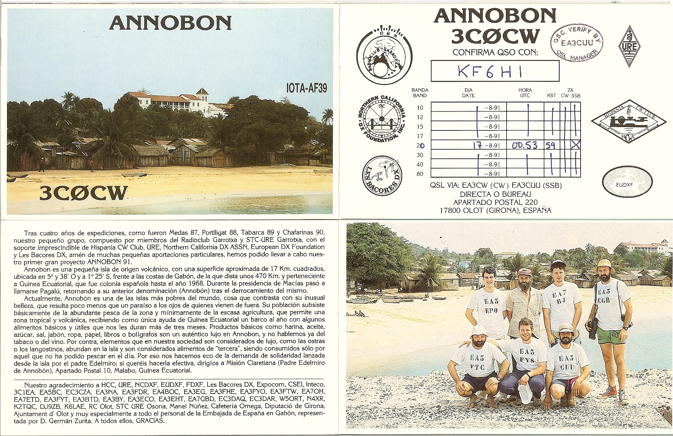 Number of QSOs found on 14 MHz with Annobon I. : 2 | |||||||||||||||||||||||||