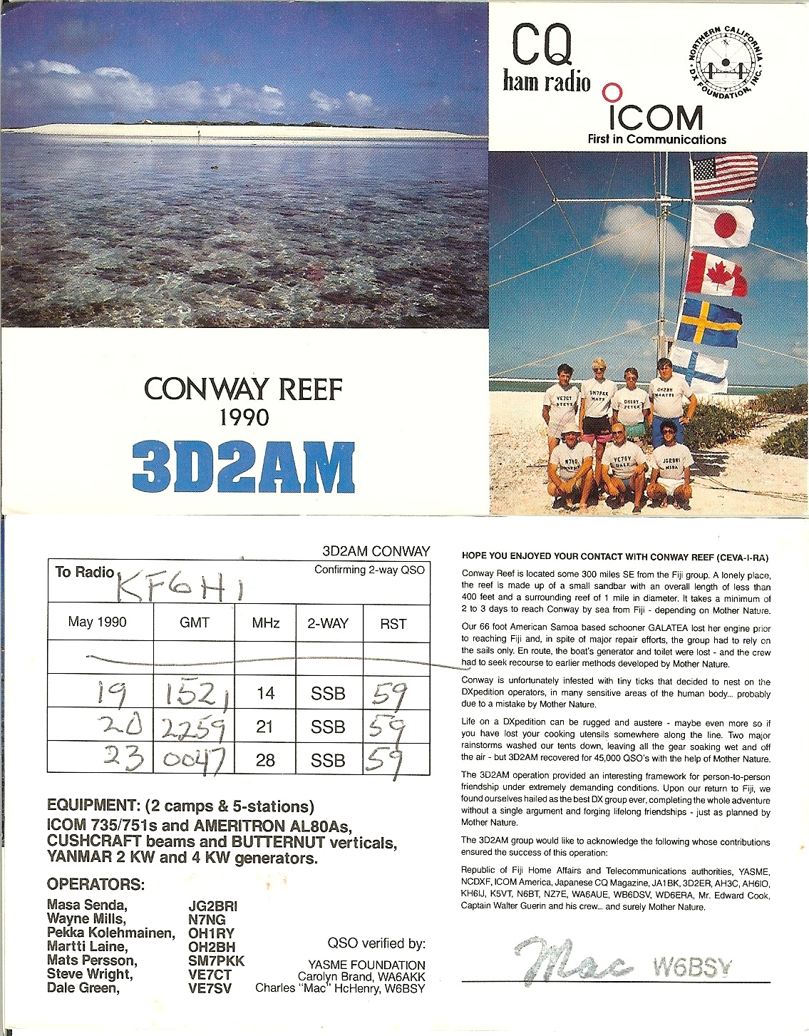 Number of QSOs found on 21 MHz with Conway Reef : 5 | |||||||||||||||||||||||||||||||||||||||||||||||||