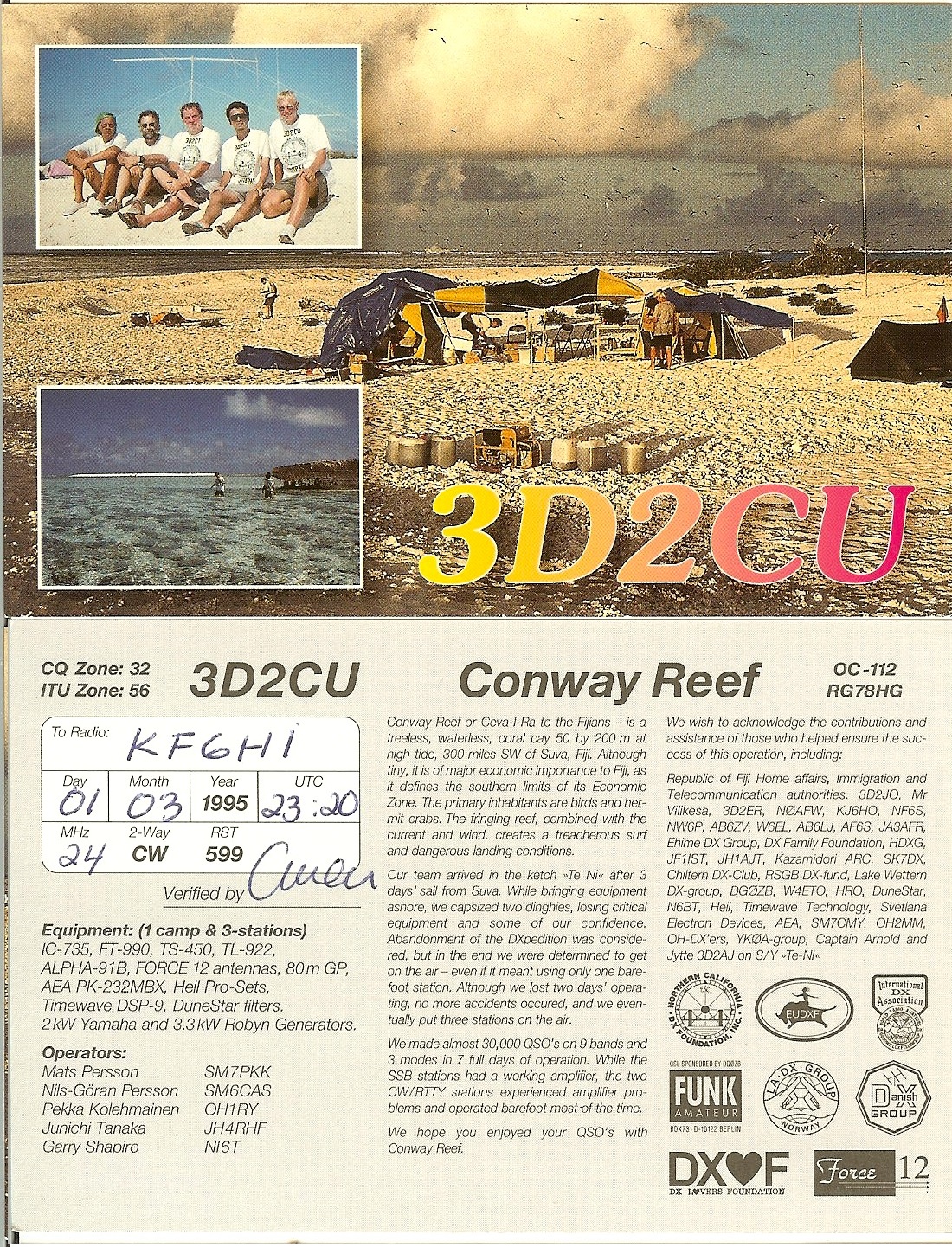 KF6HI QSO with 3D2CU (click for QRZ info), information for above highlighted contact: