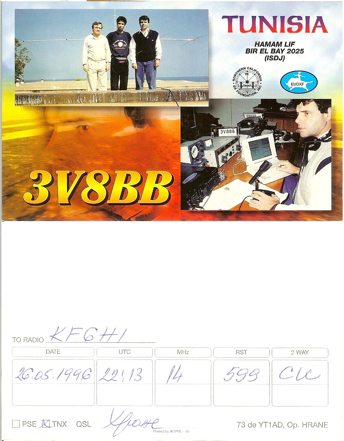 Number of QSOs found on 14 MHz with Tunisia : 1 | |||||||||||||||||