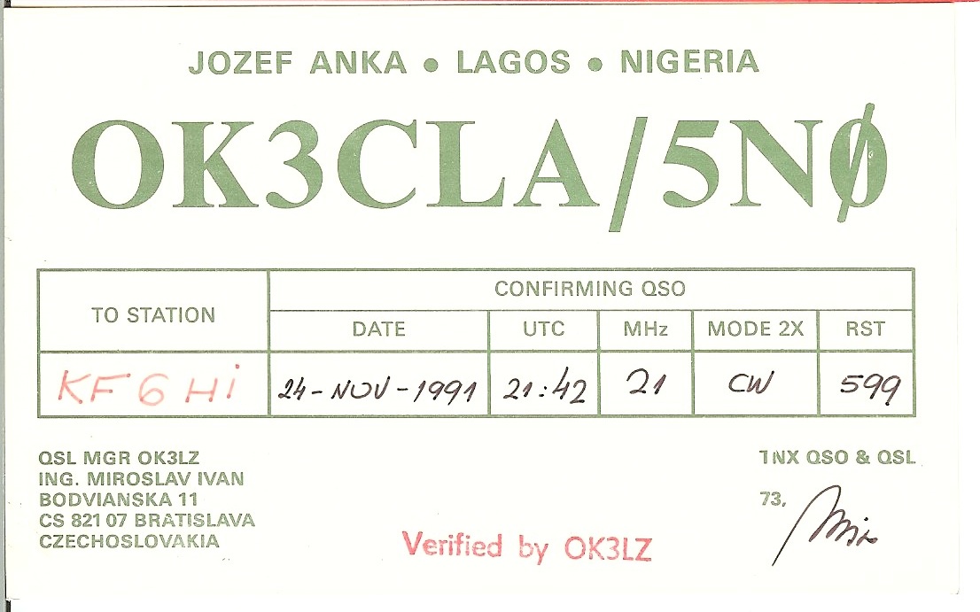 KF6HI QSO with 5N0/OK3CLA (click for QRZ info), information for above highlighted contact:
