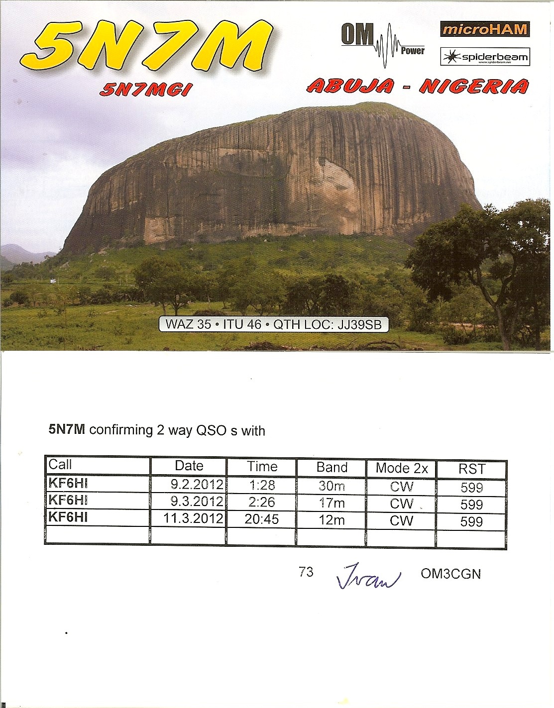 | Number of QSOs found on 10 MHz with Nigeria : 2 | |||||||||||||||||||||||||