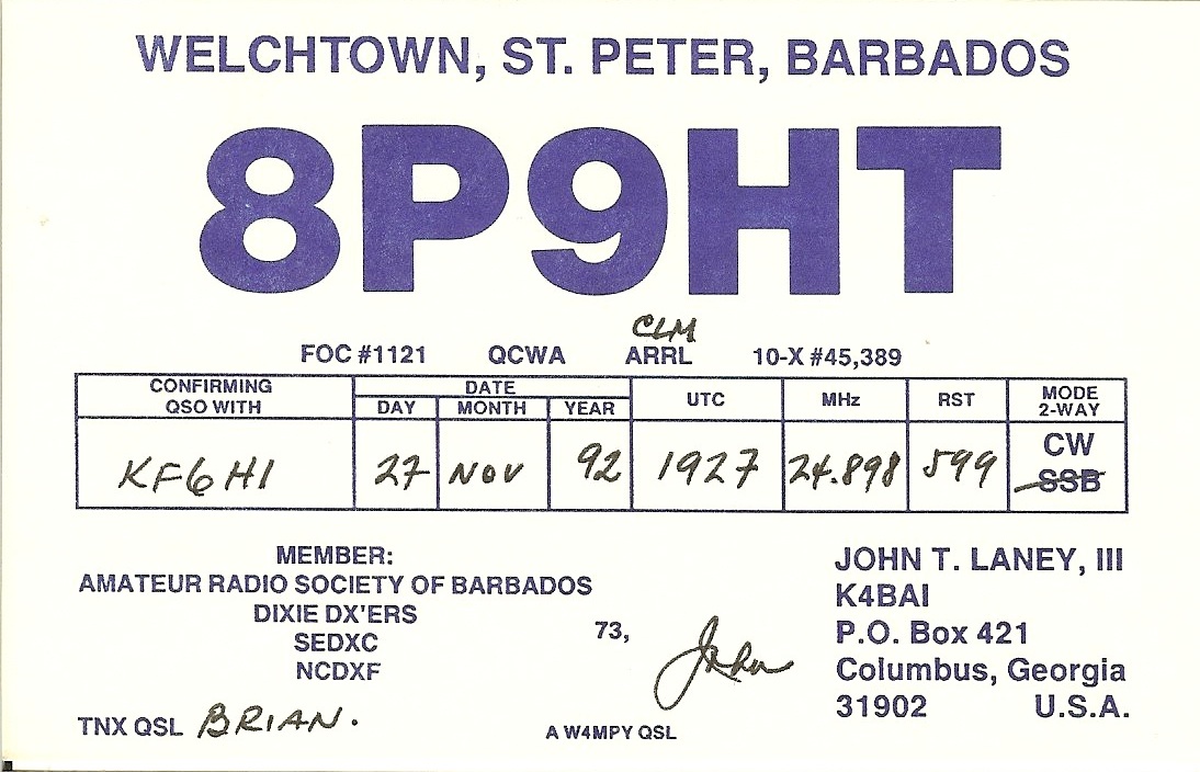 Number of QSOs found on 24.5 MHz with Barbados : 2 | |||||||||||||||||||||||||
