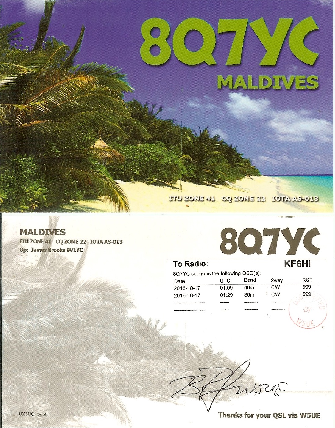 | Number of QSOs found on 7 MHz with Maldives : 1 | |||||||||||||||||