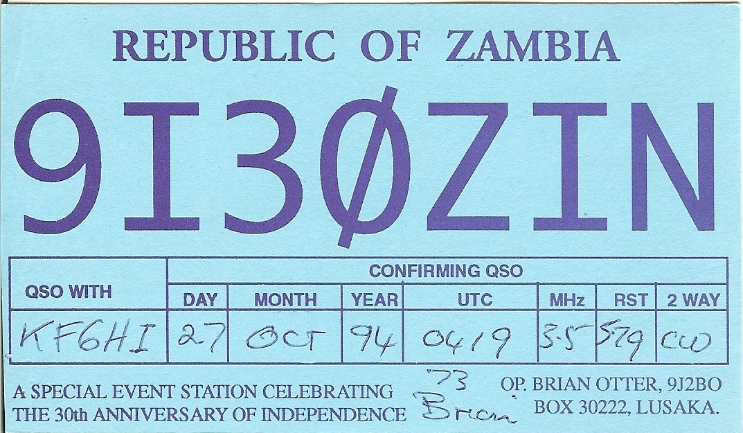| Number of QSOs found on 3.5 MHz with Zambia : 2 | |||||||||||||||||||||||||