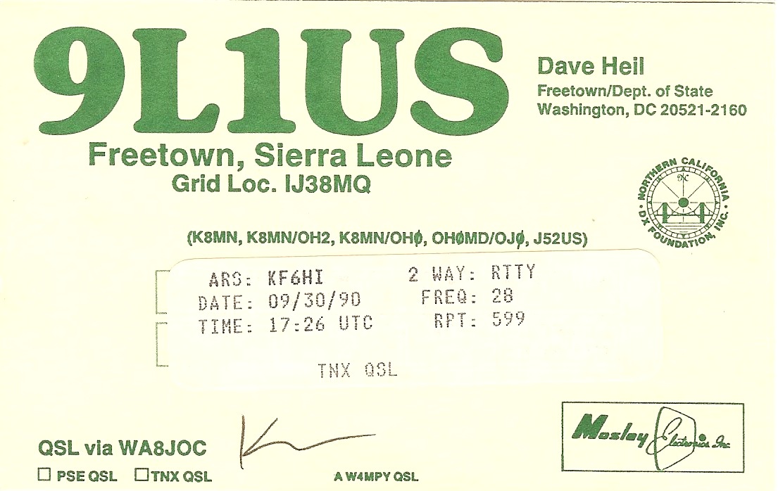 KF6HI QSO with 9L1US (click for QRZ info), information for above highlighted contact: