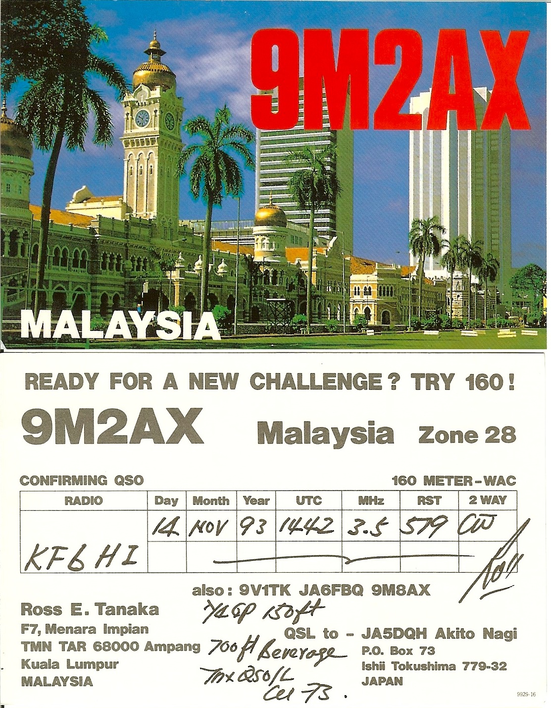Number of QSOs found on 3.5 MHz with West Malaysia : 1 | |||||||||||||||||