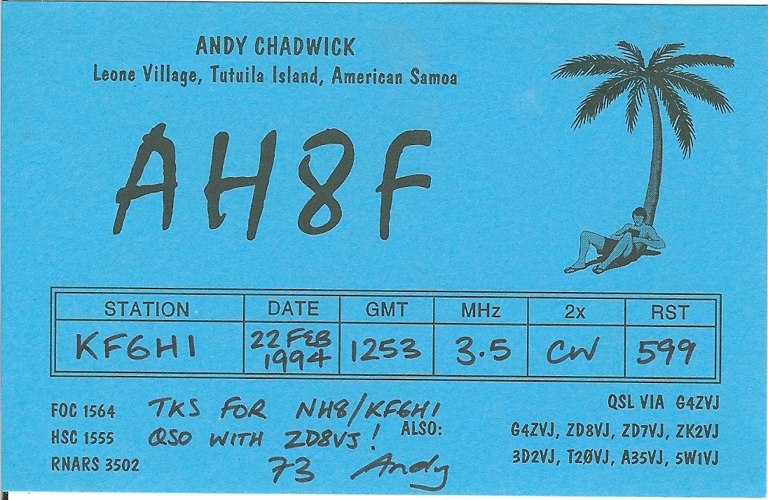 Number of QSOs found on 3.5 MHz with American Samoa : 5 | |||||||||||||||||||||||||||||||||||||||||||||||||