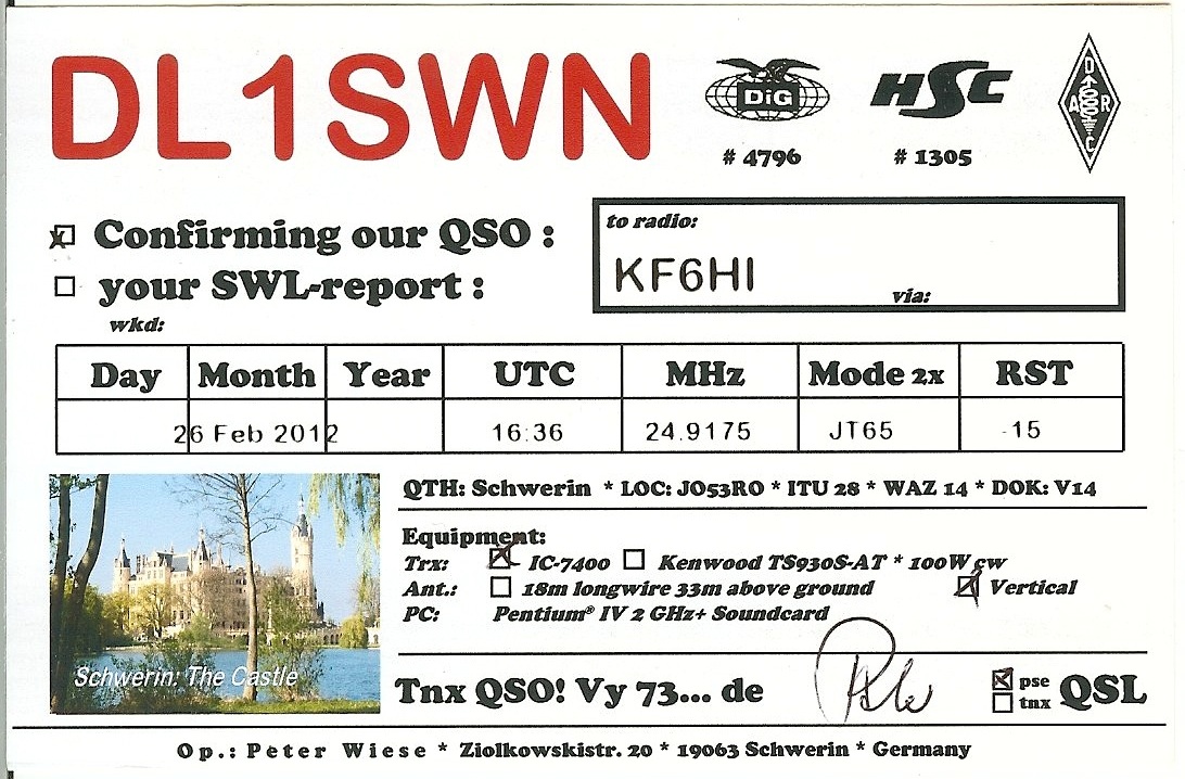 KF6HI QSO with DL1SWN (click for QRZ info), information for above highlighted contact: