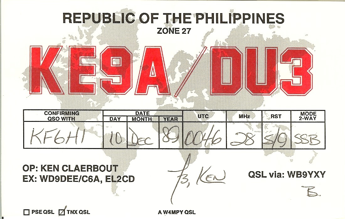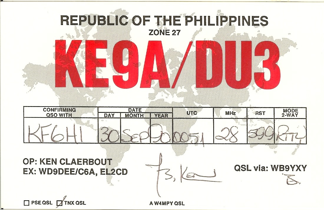 KF6HI QSO with DU3/KE9A (click for QRZ info), information for above highlighted contact: