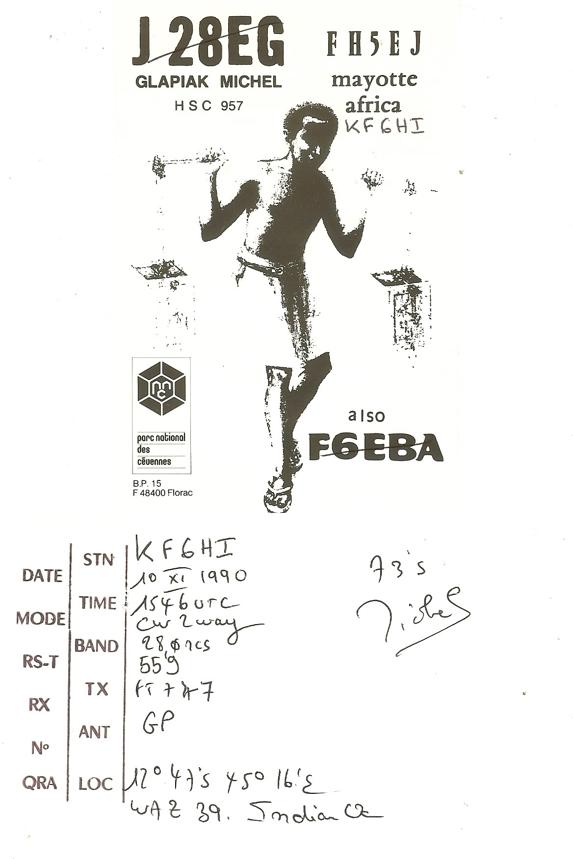 Number of QSOs found on 28 MHz with Mayotte : 1 | |||||||||||||||||