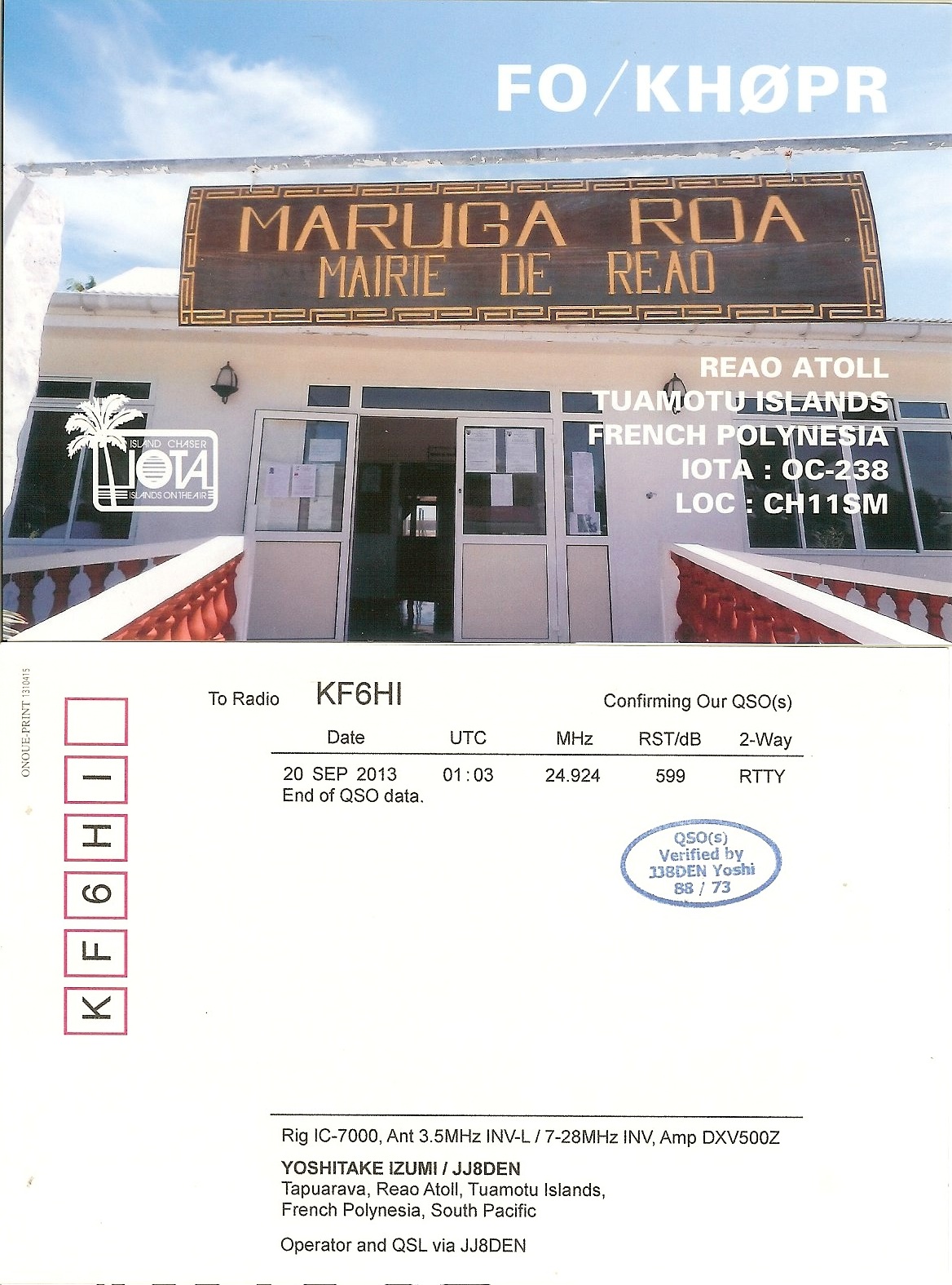 KF6HI QSO with FO/KH0PR (click for QRZ info), information for above highlighted contact: