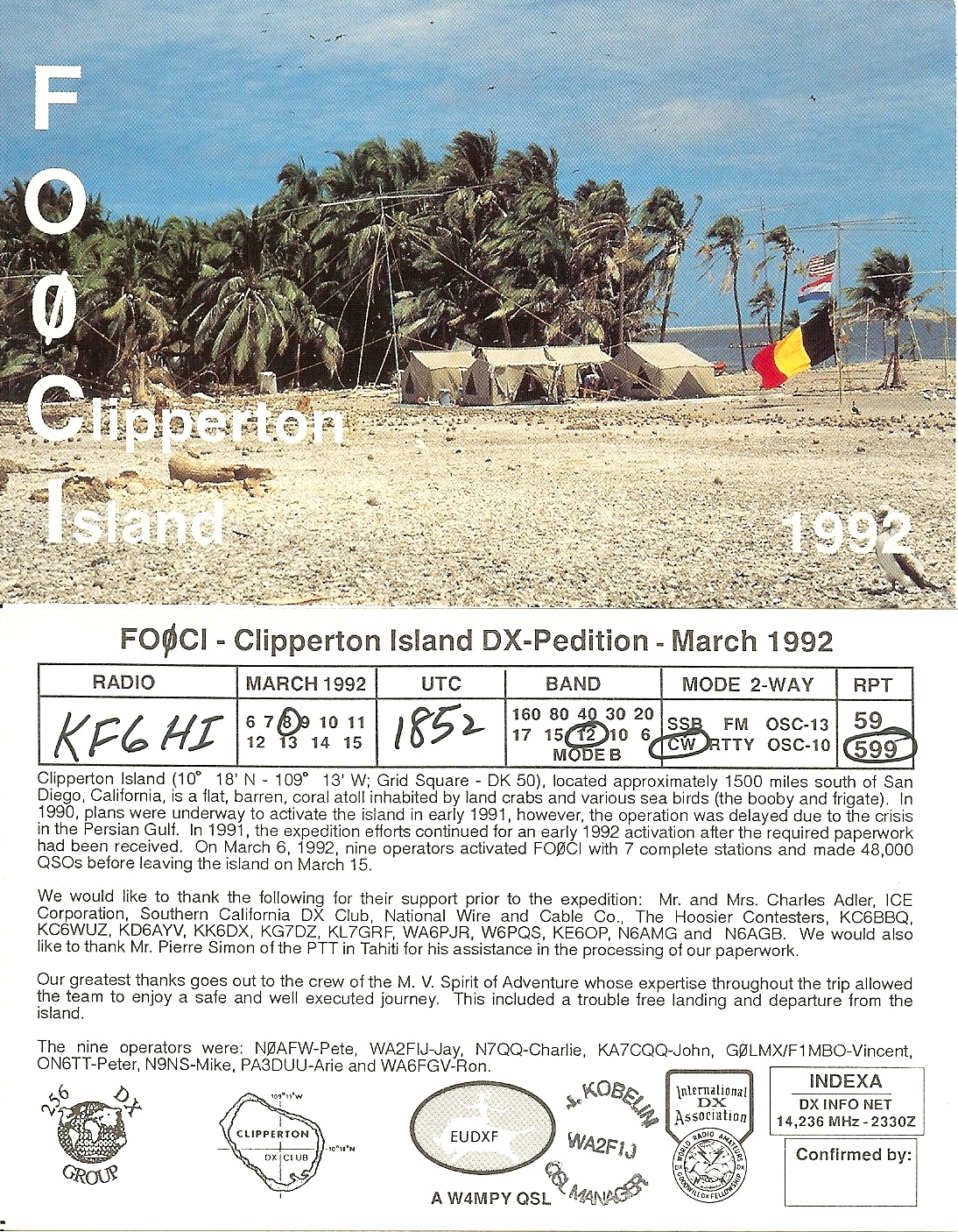 KF6HI QSO with FO0CI (click for QRZ info), information for above highlighted contact: