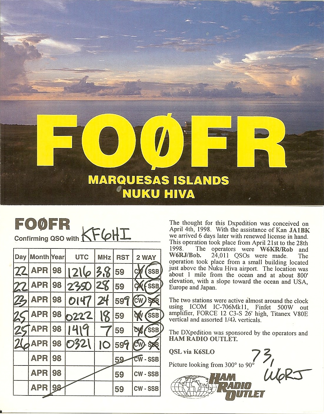Number of QSOs found on 28 MHz with Marquesas Is. : 6 | |||||||||||||||||||||||||||||||||||||||||||||||||||||||||