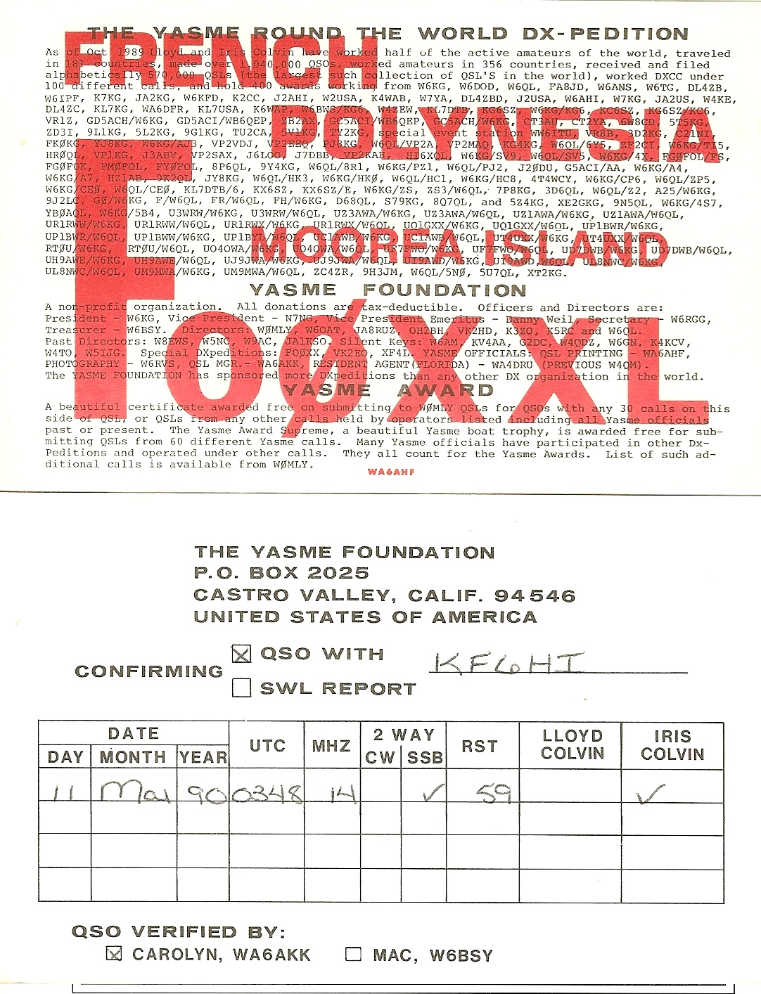| FO8AA | 1990-10-27 | 15:00 | SSB | N | Y | N | N |
