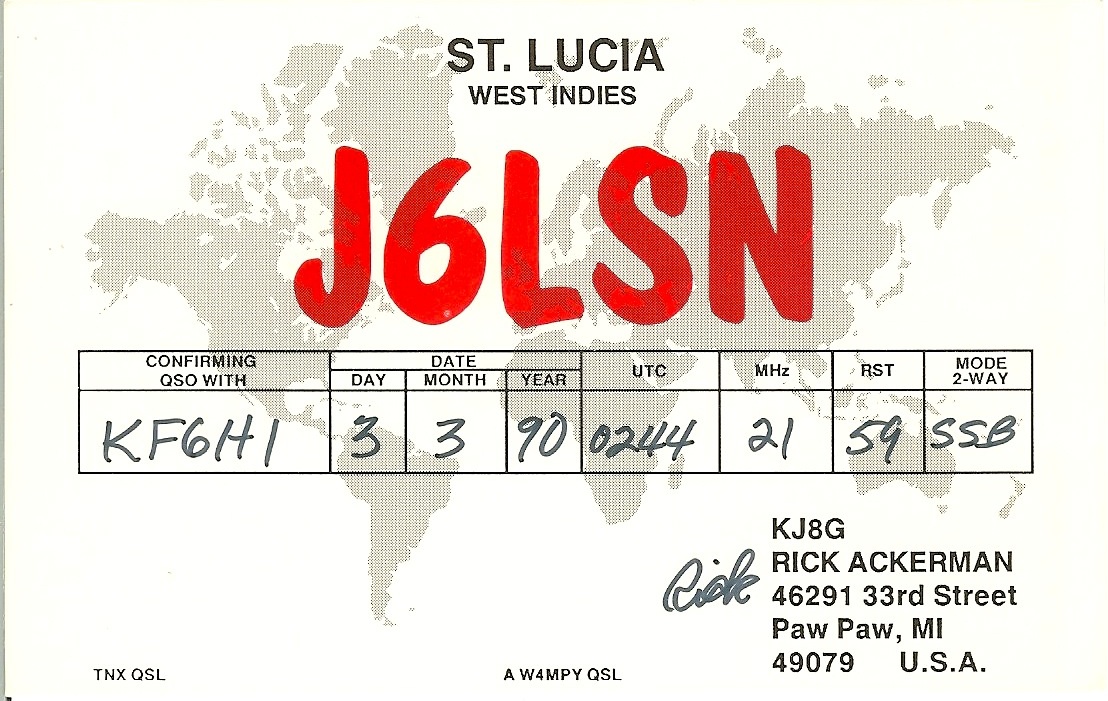 KF6HI QSO with J6LSN (click for QRZ info), information for above highlighted contact: