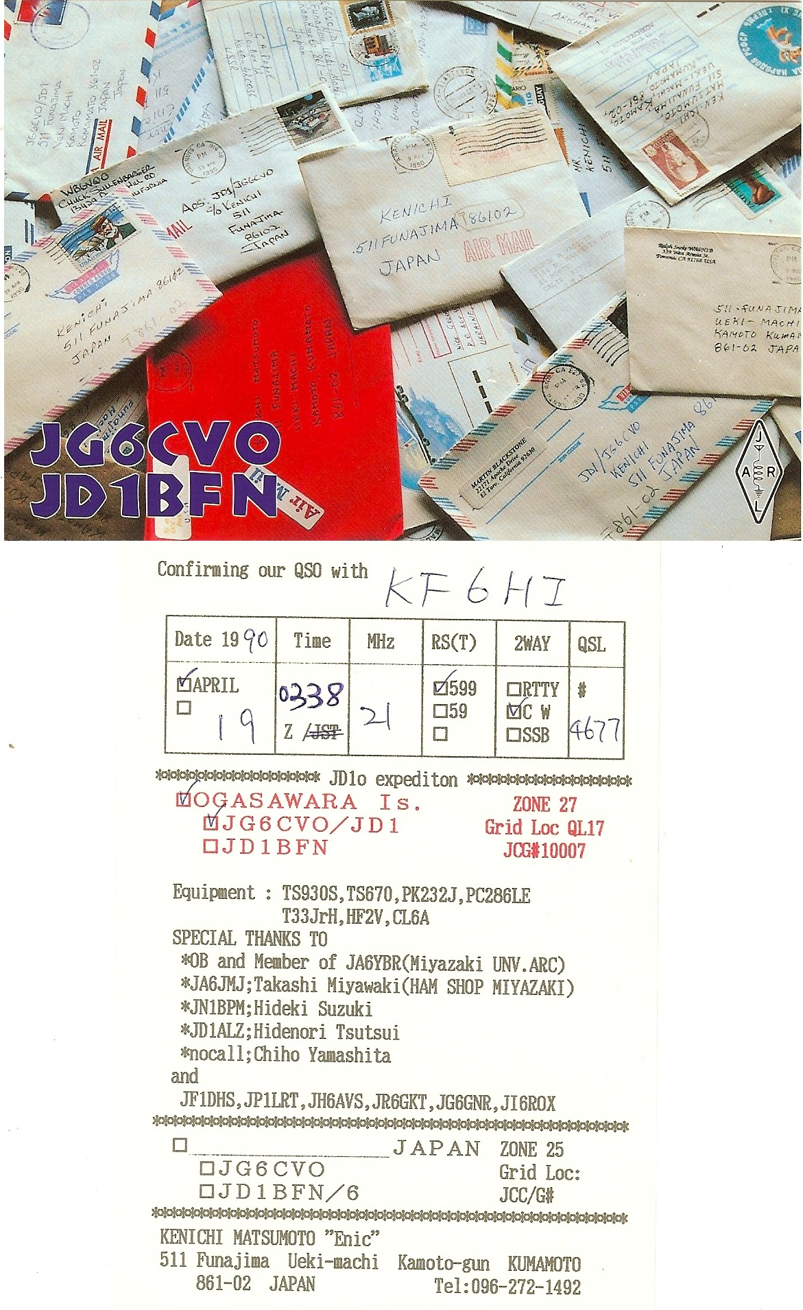 KF6HI QSO with JD1/JG6CVO (click for QRZ info), information for above highlighted contact: