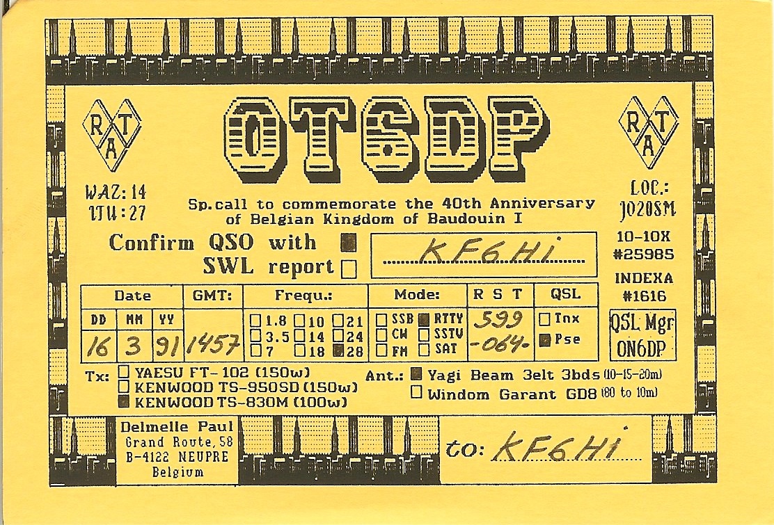 ON7GB | 1992-10-25 | 16:10 | SSB | Y | Y | Y | Y |