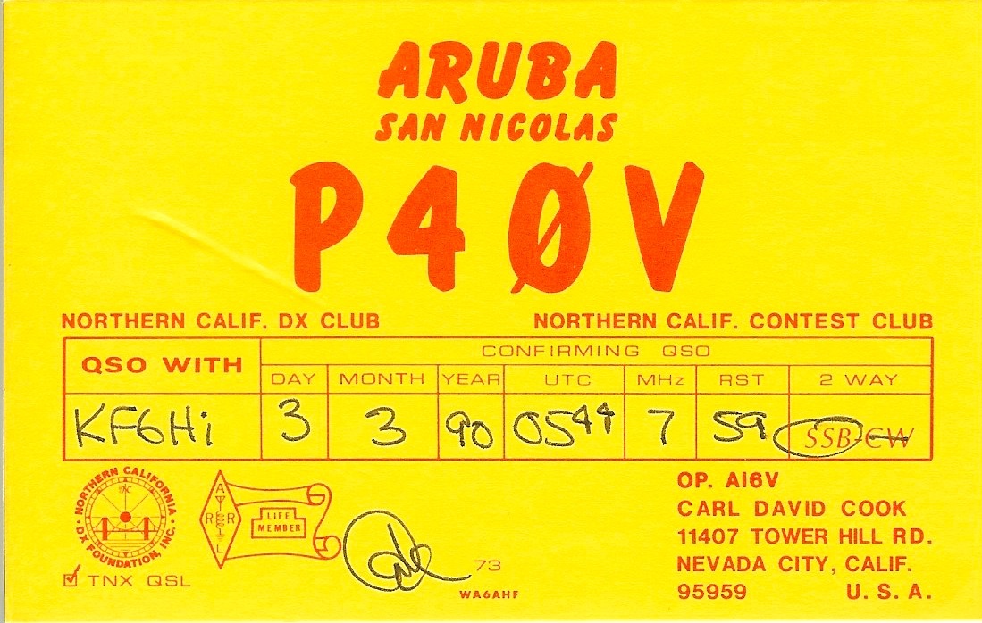KF6HI QSO with P40V (click for QRZ info), information for above highlighted contact: