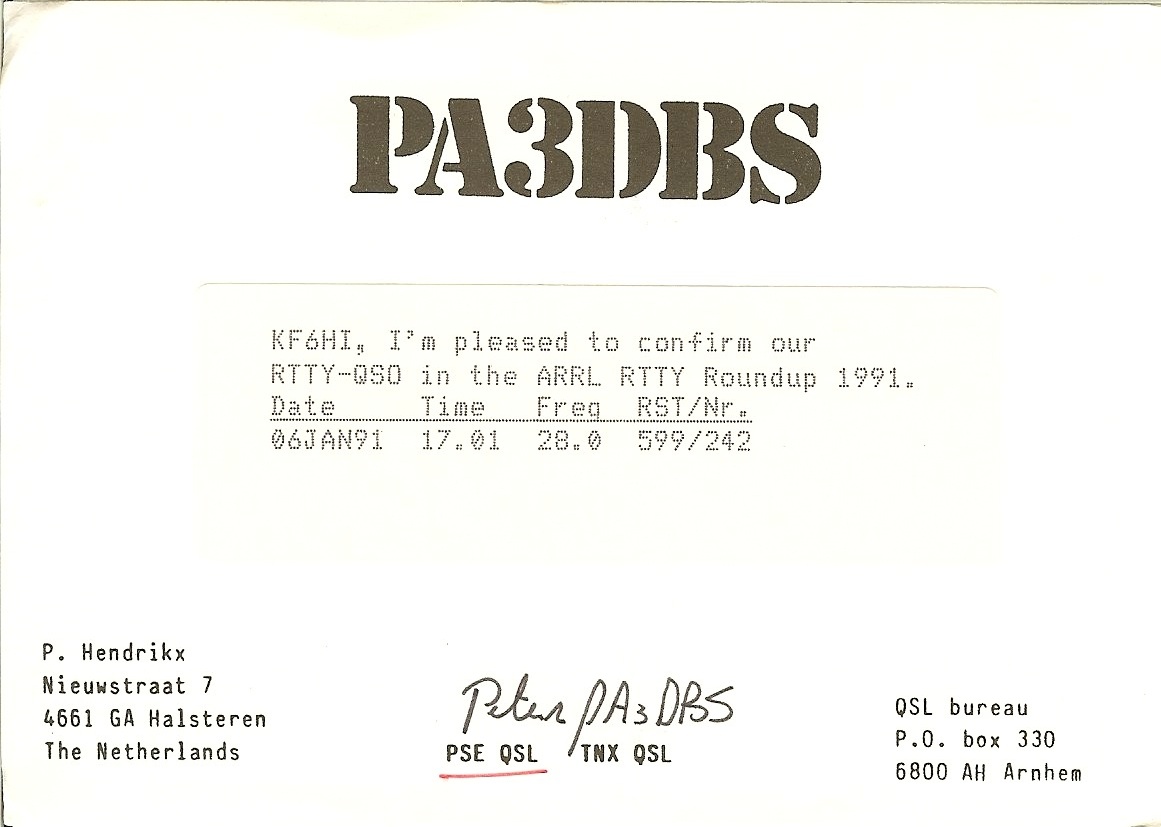 | PA3DBS | 1991-01-06 | 17:01 | RTTY | Y | Y | Y | Y |