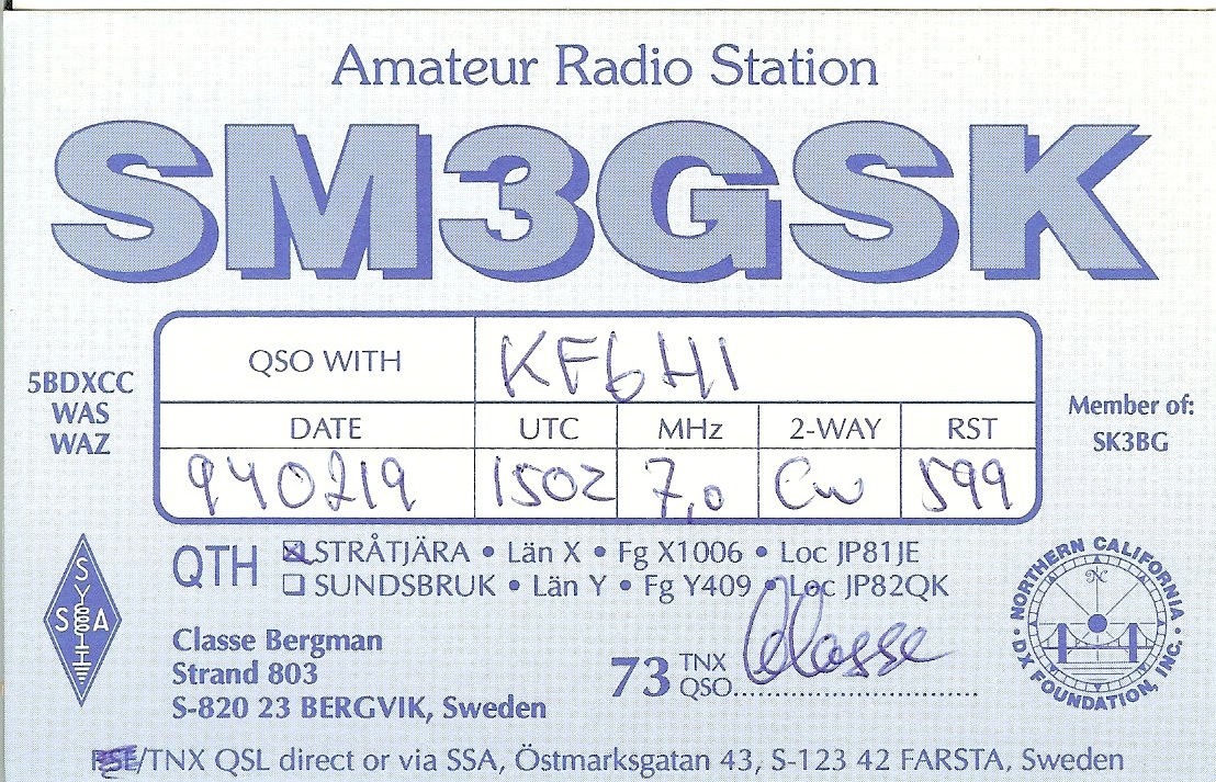 KF6HI QSO with SM3GSK (click for QRZ info), information for above highlighted contact: