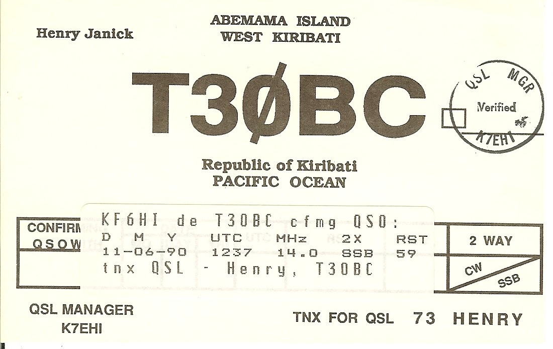 Number of QSOs found on 14 MHz with W. Kiribati (Gilbert Is. ) : 6 | |||||||||||||||||||||||||||||||||||||||||||||||||||||||||