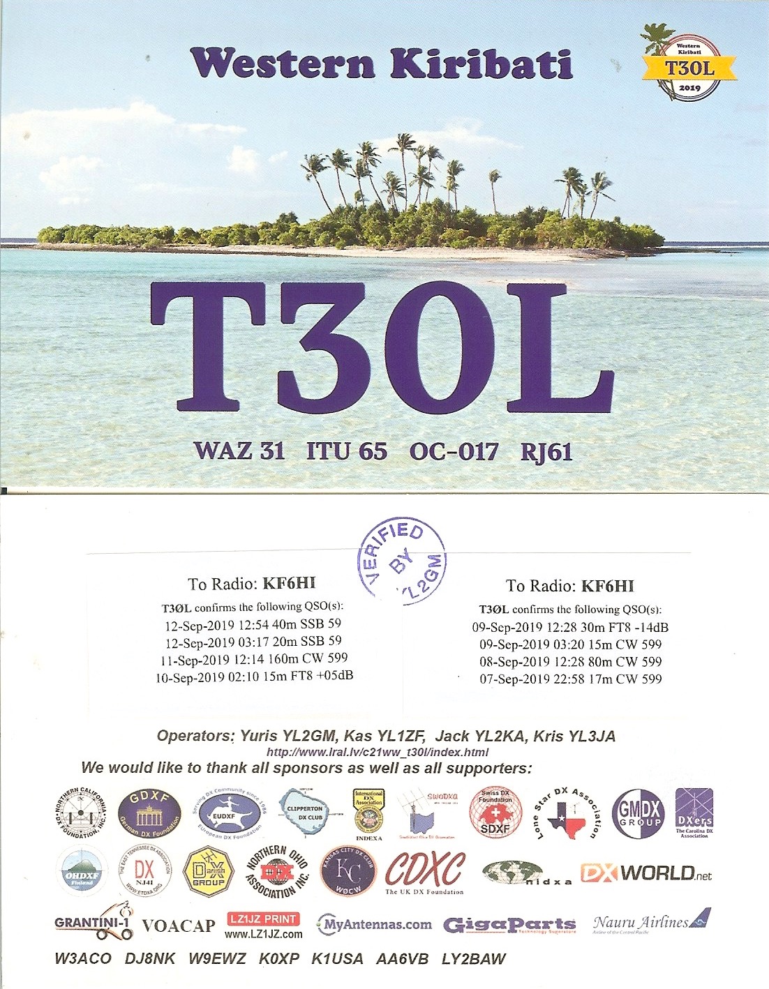 | Number of QSOs found on 1.8 MHz with W. Kiribati (Gilbert Is. ) : 1 | |||||||||||||||||